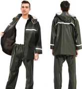 FULL-LENGTH COVERAGE: Provides comprehensive coverage from head to toe, offering protection against rain and wind in various outdoor activities. Ensures complete protection, eliminating the need for additional layers or accessories to shield against the elements., DURABLE CONSTRUCTION: Crafted with durable materials, ensuring lasting performance and reliability in challenging weather conditions. Designed to withstand wear and tear, it provides durability for frequent outdoor use without compromising on comfort or functionality., PORTABLE DESIGN WITH CARRY BAG: Comes with a compact carry bag for convenient storage and transport, ideal for on-the-go use and travel. It offers hassle-free portability, allowing users to easily pack and carry the raincoat and pants ensemble wherever they go.