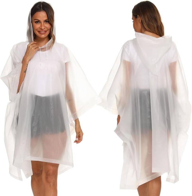 ONE SIZE FITS ALL: With a generous height range of 155-185cm, this raincoat accommodates both women and men, ensuring a comfortable fit for a wide range of users. No need to worry about sizing; it's a one-size-fits-all solution., TRANSPARENT & STYLISH: The transparent design not only keeps you dry but also allows your outfit to shine through. It's a fashionable choice for rainy days, and the stylish hue adds a touch of flair to your rainy season wardrobe., WATER-RESISTANT DESIGN: Stay dry and protected from head to toe. The integrated hood and sleeves ensure that every part of your body is shielded from the rain. The water-resistant EVA material repels moisture effectively.