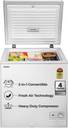 The Convertible function enables it to switch between operating as a Chiller (0-10ºC) or a Freezer (≤-26ºC), offering versatile temperature settings for various storage needs.