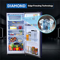 Courtesy of its Diamond Edge Freezing technology, the Haier 190 L Direct Cool Single-door Refrigerator increases the cooling retention, thus ensuring efficient performance. Also, the inner edges of this appliance are smartly designed in a diamond shape, which slows down the ice melting process. So, the cooling retention is further extended even when there are power cuts.