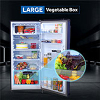 Equipped with a large vegetable box, this fridge offers additional storage space for vegetables, letting you store them all in one place. And, this compartment lets you always have ample space in case you purchase a bit more than the usual quantity.