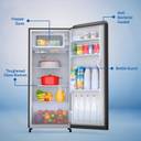 Even if you purchase additional fruits and veggies, the Haier 190 L Direct Cool Single-door Refrigerator has enough space to accommodate them. Its Diamond Edge Freezing technology enhances cooling retention and delivers energy-efficient performance. Also, this refrigerator’s inner edges are diamond shaped to slow down the melting of ice. Furthermore, as it runs on a voltage range of 135 to up to 290 V, this appliance does not need a stabiliser for safe operation.