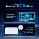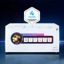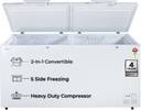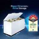 Enhanced Holding Time (upto 225 Hours) : Maximize cooling retention up to 225 hours with our deep freezer, fortified by 70mm high puff thickness, a 3-layer trapezoid door design, and an embossed PCM inner liner, all driven by robust technology, ensuring prolonged freshness from -26°C to 8°C temperatures Dual Condenser : The Dual Condenser functions as a reliable backup if the external condenser gets obstructed due to external factors. Furthermore, the internal WOT (Wire On Tube) system expedites the attainment of the desired temperature, significantly improving the freezing process Wide Voltage Range : Freezer operates smoothly without a stabilizer, handling voltage swings from 160V to 260V effortlessly, ensuring consistent cooling for your peace of mind Convertible : The Convertible Feature allows it to switch between operating as a Chiller (0-10ºC) or a Freezer (=-26ºC), offering versatile temperature settings for various storage needs