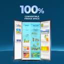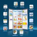 The Haier 2-Door Side-by-Side Refrigerator offers a perfect blend of functionality, convenience, and style, making it an excellent choice for modern households seeking a reliable and efficient cooling solution. These refrigerators often utilize advanced cooling technologies such as multi-airflow systems and precise temperature controls. These features help maintain optimal conditions inside the fridge and freezer compartments, preserving the freshness of your food for an extended period. This model is equipped with a BPA-free water tank that can be used for dispensing water. Furthermore, integrated with Wi-Fi, this refrigerator offers you complete control over its functions easily. You can now convert your refrigerator to 100% fridge section when in need so that space is not an issue. With magic convertible feature, now regulate your temperature ranging from -24°C to 5°C. Expert Inverter technology optimizes compressor operation based on cooling demand, resulting in significant energy savings compared to traditional refrigerators. This efficiency is particularly advantageous in side-by-side models, where larger capacity units typically consume more power. This feature is beneficial when loading groceries or during periods of high usage, ensuring your food stays at the optimal temperature. Now get 360° cooling with 21 days of freshness intact using magic cooling with deo fresh technology feature. A jumbo ice maker would have a larger ice-making capacity compared to standard ice makers found in most refrigerators. This means it can produce a greater volume of ice in a shorter amount of time, ensuring you never run out, even during parties or gatherings. External Digital Touch Panel is used to adjust the temperature settings for providing uniform cooling and keeping the freshness of food items for longer time.
