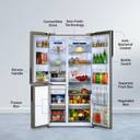 The Haier 3-Door Side-by-Side Refrigerator offers a perfect blend of functionality, convenience, and style, making it an excellent choice for modern households seeking a reliable and efficient cooling solution. These refrigerators often utilise advanced cooling technologies such as multi-airflow systems and precise temperature controls. These features help maintain optimal conditions inside the fridge and freezer compartments, preserving the freshness of your food for an extended period. You can now convert your refrigerator to 83% fridge section when in need so that space is not an issue. With magic convertible feature, now regulate your temperature ranging from -18°C to 5°C. Expert Inverter technology optimizes compressor operation based on cooling demand, resulting in significant energy savings compared to traditional refrigerators. This efficiency is particularly advantageous in side-by-side models, where larger capacity units typically consume more power. This feature is beneficial when loading groceries or during periods of high usage, ensuring your food stays at the optimal temperature. Now get 360° cooling with 21 days of freshness intact using magic cooling with deo fresh technology feature. A jumbo ice maker would have a larger ice-making capacity compared to standard ice makers found in most refrigerators. This means it can produce a greater volume of ice in a shorter amount of time, ensuring you never run out, even during parties or gatherings. External Digital Touch Panel is used to adjust the temperature settings for providing uniform cooling and keeping the freshness of food items for longer time.