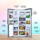 The Haier 3-Door Side-by-Side Refrigerator offers a perfect blend of functionality, convenience, and style, making it an excellent choice for modern households seeking a reliable and efficient cooling solution. These refrigerators often utilise advanced cooling technologies such as multi-airflow systems and precise temperature controls. These features help maintain optimal conditions inside the fridge and freezer compartments, preserving the freshness of your food for an extended period. You can now convert your refrigerator to 83% fridge section when in need so that space is not an issue. With magic convertible feature, now regulate your temperature ranging from -18°C to 5°C. Expert Inverter technology optimizes compressor operation based on cooling demand, resulting in significant energy savings compared to traditional refrigerators. This efficiency is particularly advantageous in side-by-side models, where larger capacity units typically consume more power. This feature is beneficial when loading groceries or during periods of high usage, ensuring your food stays at the optimal temperature. Now get 360° cooling with 21 days of freshness intact using magic cooling with deo fresh technology feature. A jumbo ice maker would have a larger ice-making capacity compared to standard ice makers found in most refrigerators. This means it can produce a greater volume of ice in a shorter amount of time, ensuring you never run out, even during parties or gatherings. External Digital Touch Panel is used to adjust the temperature settings for providing uniform cooling and keeping the freshness of food items for longer time.