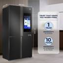Haier 651 L Frost Free Side by Side Convertible Refrigerator with 100% Convertible Fridge SpaceMulti Air FlowDigital Control Panel360-Degree CoolingMagic Convertible ZoneExpert Inverter 4-Door (Black Glass, H-758SIKGU1)