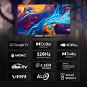 Experience next-level entertainment with the Haier OLED TV, designed to deliver breathtaking picture quality with Dolby Vision IQ and HDR10+ for stunning contrast and vibrant colors. The 120Hz refresh rate and MEMC technology ensure smooth, fluid motion for all your favorite content. Enjoy immersive sound with Dolby Atmos and dbx-tv through powerful 2.1 channel, 50 W speakers. With 3GB RAM and 32GB storage, plus AMD FreeSync Premium, VRR, and ALLM, gaming and streaming are a breeze. Google TV gives you quick access to your apps, hands-free voice control, and built-in Chromecast. The solar-powered remote and rotating stand add convenience and style to your setup. Stay connected with Wi-Fi 6 and Bluetooth 5.2 for fast, reliable performance.