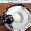 This shaving brush is crafted from high-quality imitation badger bristles and uses no animal hair, making it cruelty-free.