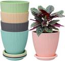 Minimalist Styled Plant Pots: The Flower Plant Pots are designed with matte finishing exterior in soft, round shapes, bringing out a modern minimalistic styled ceramic like visual representation, with brief stripes making the planters special, fits for any home/office dccor. And smooth glossy inner finish for easy cleaning. Great for replanting, and for flower plant lovers. Premium Eco-friendly Plastic Planters: Carefully choosing super lightweight, sturdy polypropylene, making such classy, durable, thick planters, no odor, hard to broken, makes the plant rotation process much easier and works great around kids or lively animals, great for decorate windowsill, desktop, shelf, bedroom, living room, kitchen, garden, office etc. Drainage Hole And Fitting Tray: Each plastic planter pots comes with a drainage hole and a Fitting Tray. Drainage Hole let excess water flow out, help prolong the life of your precious plants and the fitting saucers are provided to catch excess water. Your choice for flexible use. Perfect for Macrame Planters: 6.5 inch Opening Diameter, 3.5 inch Bottom Diameter, 6 inch Height & Multicolor. This size is perfect to put in your hanging macramé, suitable for planting most small and medium-sized home/office plants like orchid, snake plant, mint, parlor palm, herbs, devil’s ivy, cactus, aloe, to brighten up your living place. Make Your Own Garden: From these 05 Pcs minimalistic styled plastic planters are great for decorate windowsill, desktop, shelf, bedroom, living room, kitchen, garden, office, etc.