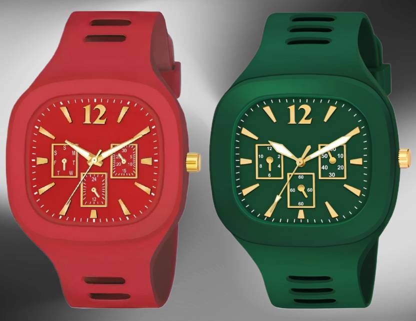 Stylish Premium Quality Men Watch Square Dial Wrist Sports Watch with Pack of 2