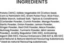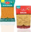 Ingredient | - Aloo Bhujia - Potato (44%), Edible Vegetable Oil (Cotton Seed, Corn & Palmolein Oil), Gram Pulse Flour, Rice Flour, Edible Starch, lodised Salt, *Spices & Condiments (Coriander Powder, Cumin Powder, Mango Powder, Garlic Powder, Onion Powder, Lemon Powder, Ginger Powder, Red Chili Powder, Mace Powder, Nutmeg Powder, Turmeric Powder, Mint Leaves Powder), Acidity Regulator (INS 330), Anticaking Agent (INS 551), Flavour Enhancers (INS 627 & INS 631) and Natural & Nature Identical Flavouring Substances. *Used as natural flavouring substances., Bhujia - Tepary Beans Flour, Edible Vegetable Oil (Cotton Seed, Corn & Palmolein Oil), Gram Pulse Flour, lodised Salt, *Spices & Condiments (Black Pepper Powder, Ginger Ginger Powder, Clove Powder, Mace Powder, Nutmeg Powder and Cardamom Powder). *Used as natural flavouring substances.