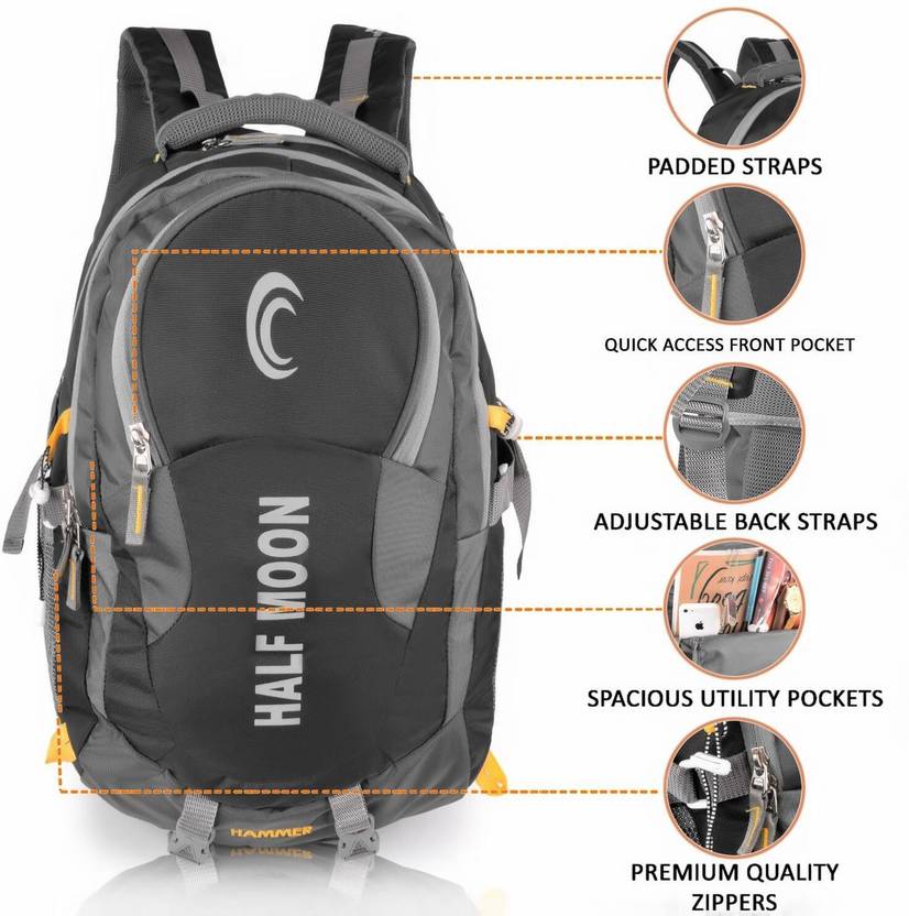 The HALFMOON Hammer basic backpack ensures complete safety to your 17.3 inch laptop with high quality build and wide range of built-in features, With Dual Side Pocket In the in side of the bag, featuring a protective padding, you can rest assured that the laptop inside it will be well cushioned from any accidental caused when you bump into any surface. As it is made of nylon, can withstand abrasions and is long lasting. It also features highly useful for motorists, cyclists, walking, The inner material is made of polyster. This backpack is also water-resistant.