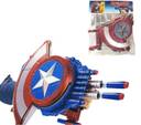 HALO NATION SUPERHERO WEAPON CAPTAIN SHIELD BLASTER TOY WITH 10 SOFT DARTS - ONE TOUCH CONVERTS FROM SHIELD TO BLASTER GUN TOY - FOR KIDS BOYS (Red, Blue)