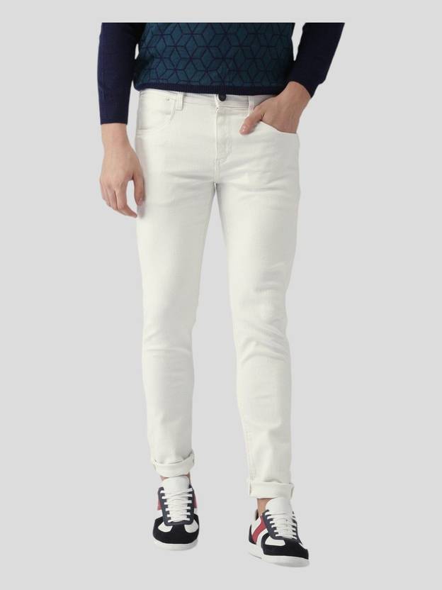 Men Skinny Mid Rise White Jeans