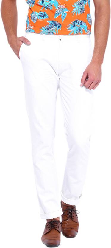 Boasting of solid design for unmatched charm are these white coloured trousers from Halogen. The twin side and twin back pockets are designed to stash essential handy stuff, whereas the single button fastening ensures great grip and fit all day long. Wear them smartly with a contrast striped T-shirt and sneakers.