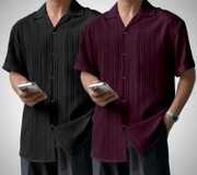Men Regular, Super Slim, Slim Fit Self Design Curved Collar Casual Shirt (Pack of 2)