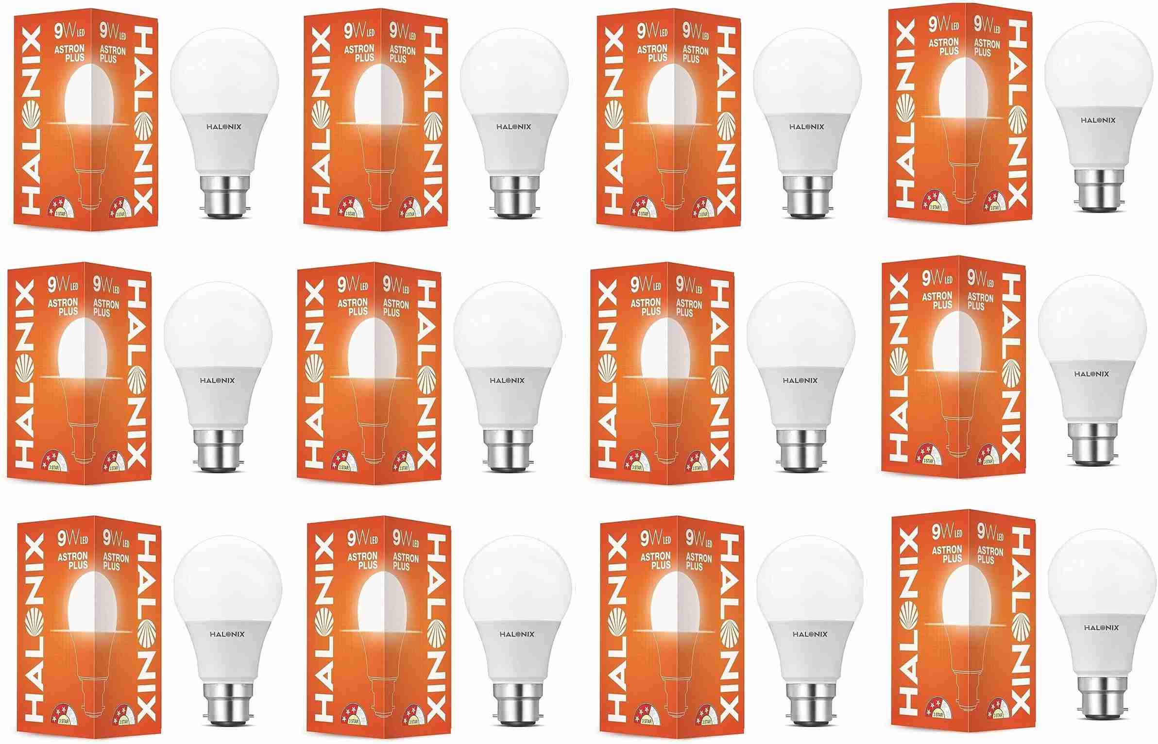 9 W Basic Round B22 LED Bulb (White, Pack of 12)