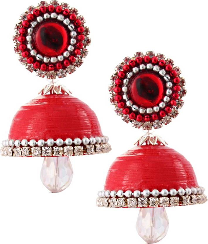 Trendy DealsĀ Hancrafted Single Stud Red Jhumka Beads Paper Jhumki Earring