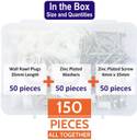 HALSEY Wall Rawl Plugs, Screw and Washers (35 MM) (Set of 50 in Each) Total 150 pcs Concrete Screws (3.5 cm)
