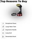 This garment steamer has a detachable fabric brush to remove lint from your clothes. This brush collects lint and visible dust from all your fabrics to keep them spot-free.