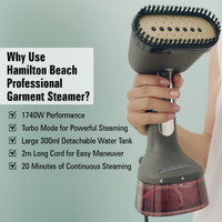 The Hamilton Beach Garment Steamer delivers exceptional performance with 1740 W of power. Its quick heating capability along with the power allows you to steam your clothes in minutes so you can get on with your day.