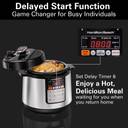 The Hamilton Beach Electric Cooker comes with a One Touch Steam Release Button to keep you safe from the hot steam. The 1100 W of this electric cooker provides exceptional performance to get your meals ready quickly. Its delayed start function allows you to set a time for cooking even when you are away from the kitchen. The True Slow technology of this electric cooker prevents overcooking of the food. With its 3 Heat settings, you can choose the texture of your food to preserve its nutrients.