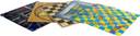 The games collection includes 5 double-sided playing boards and all the pieces necessary to play all 100 games. It has die, coloured pieces, etc.