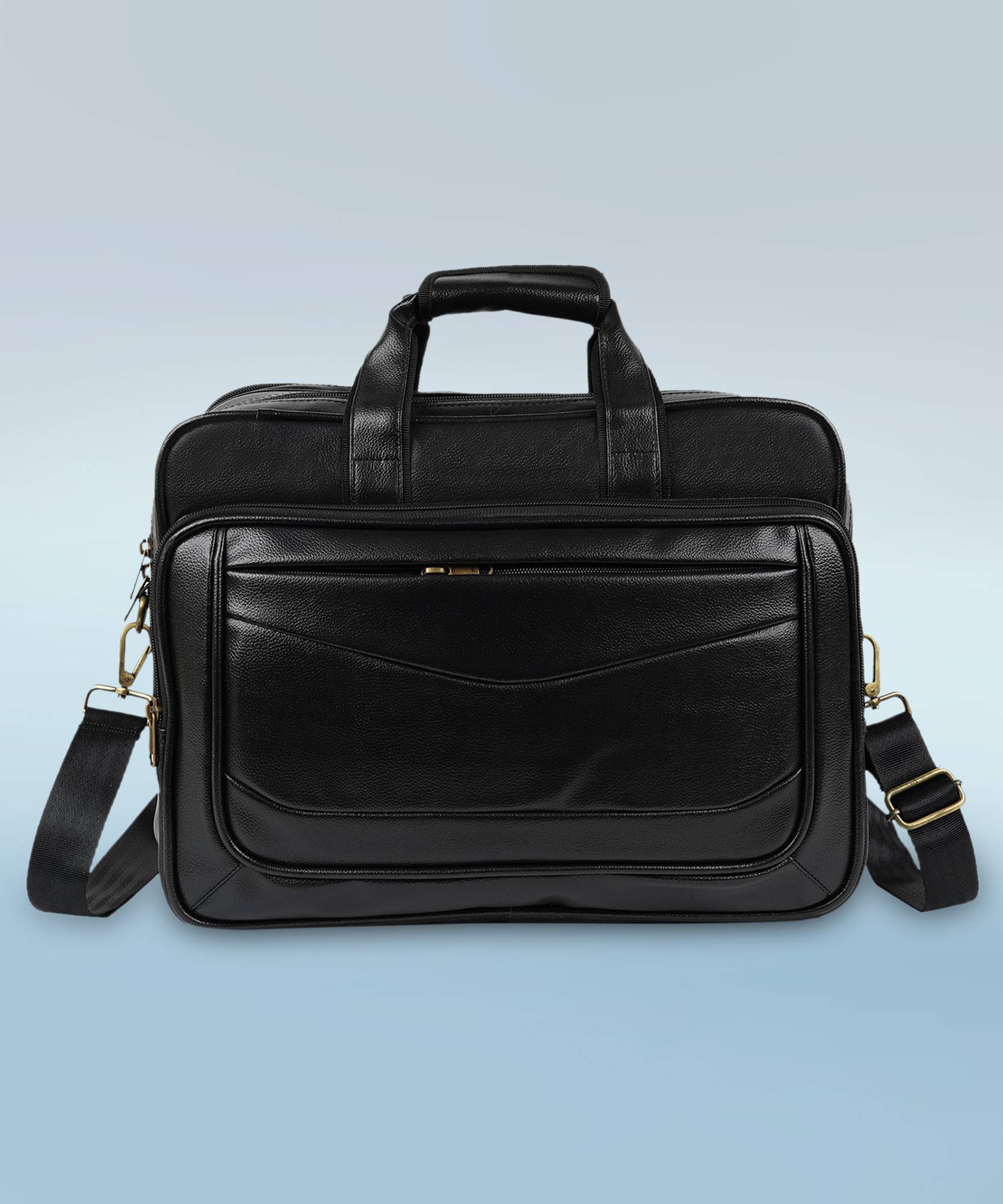 Crafted from genuine leather for durability and a luxurious look., Multiple compartments, including a padded laptop section for 15.6-inch laptops., Equipped with a comfortable leather handle and padded, adjustable shoulder strap., Measures 40cm x 8cm x 27cm, offering a sleek yet spacious design., Stylish and functional, ideal for complementing business attire.