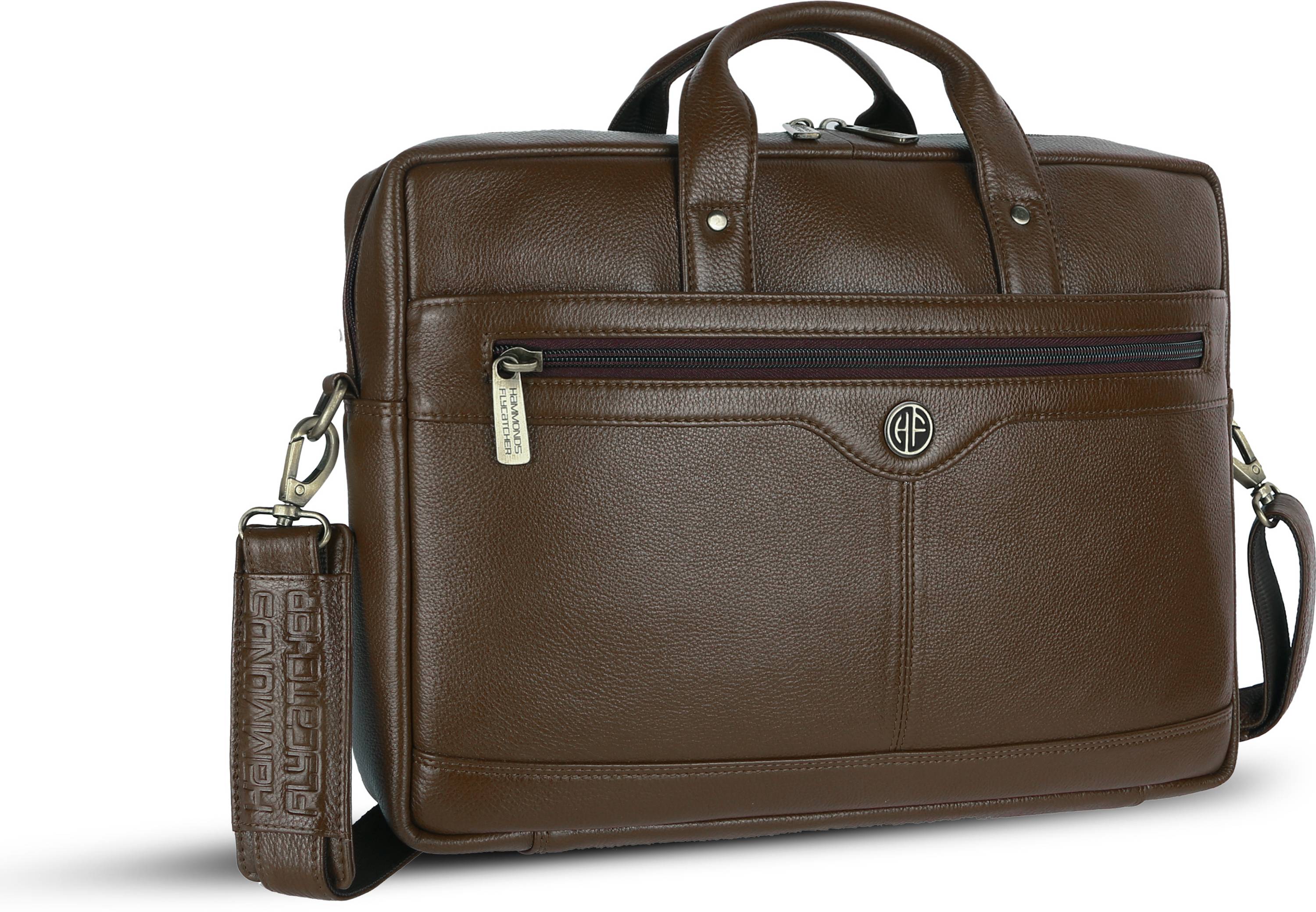 Discover the perfect blend of style, functionality, and durability with the HAMMONDS FLYCATCHER Genuine Leather Office Laptop Bag for Men. Crafted from premium genuine leather, this laptop bag for men is designed to meet the demands of the modern professional. Made from 100% genuine leather, it offers exceptional durability and a luxurious feel, ensuring it stands the test of time. Stay organized with a spacious main compartment, padded laptop compartment (fits up to 15.6-inch laptop), inner zipper pocket, mobile pocket, wallet pocket, pen slots, front zipper pockets, and back zipper pocket. The comfortable leather handle and padded, removable, adjustable shoulder straps provide versatility and comfort for hand or shoulder carry. With its sleek, sophisticated design, this leather laptop bag enhances your professional look and is perfect for business meetings, office use, and daily commuting. Measuring 40cm in length, 8cm in width, and 27cm in height, our men office bag offers perfect balance of space and portability. The HAMMONDS FLYCATCHER Leather Office Bag for Men is more than just a bag; it's a statement of style and professionalism. High-quality nylon thread stitching, durable zippers and sliders ensure it not only looks good but performs exceptionally. Water-resistant feature provides added protection for your essentials. Invest in a bag that matches your ambition. Choose the HAMMONDS FLYCATCHER Genuine Leather Laptop Bag for Men and experience elegance, practicality, and durability. Includes a 1-year warranty for peace of mind. Elevate your professional attire with this executive laptop messenger bag, designed for quality and style in every aspect of life.