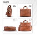 Elevate your professional style with the HAMMONDS FLYCATCHER Men Laptop Bags for Office, crafted from premium genuine leather. Designed for discerning individuals, this executive briefcase seamlessly blends functionality with elegance. With dimensions perfectly tailored (41cm x 11cm x 30cm) to accommodate up to a 15.6-inch laptop, this leather bag offers spacious compartments including a padded laptop sleeve, multiple interior pockets for organization, and a sleek exterior featuring a trolley strap for convenient travel. Experience unparalleled comfort with its padded removable shoulder strap and adjustable handles, ensuring effortless carrying whether you're commuting or traveling. The expandable design allows for additional storage space when needed, making it versatile for everyday use or business trips. Built to last, this official bag for men is not only stylish but also water-resistant, providing added protection for your essentials. Complete with Hammonds Flycatcher brand's signature zippers and sliders, stitched with high-quality nylon threads by professional designers, it exudes durability and refinement. Ideal for professionals seeking a sophisticated leather laptop bag that meets their daily business needs, the HAMMONDS FLYCATCHER Men's Leather Office Laptop Bag or men messenger bag also serves as a doctor bag for clinic visits or a laptop bag for office use. It doubles as mens laptop bag for office environments and office messenger bag for men, ensuring you stay organized and stylish throughout the day.
