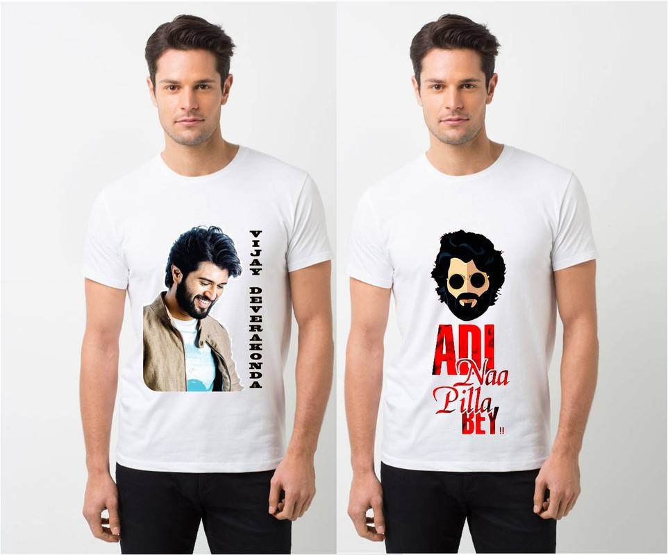 Pack of 2 Rowdy Tshirt Bad Boys Arjun Reddy Vijay Deverakonda Tshirt-T1058-T1161 Men Solid Round Neck Polyester White T-Shirt