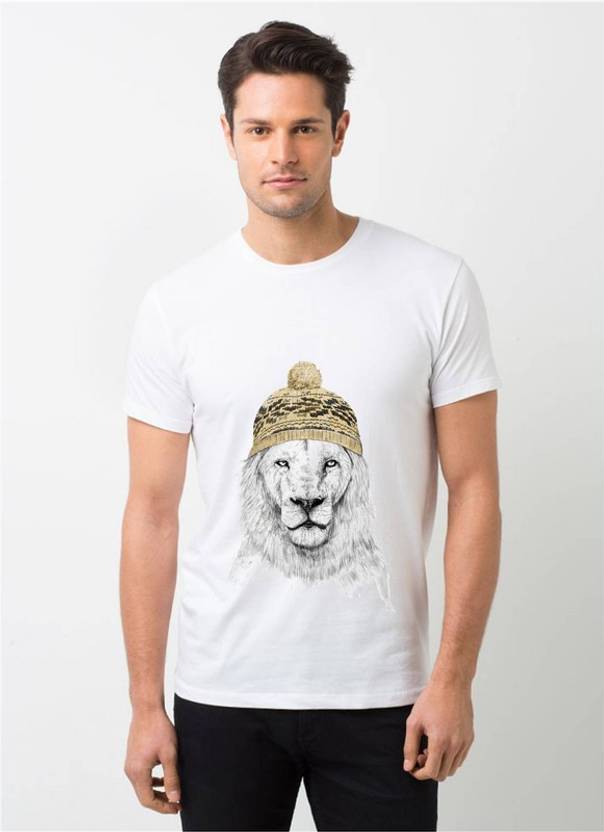 winter,monkey cap, monkey cap,cooled, lion,king,animal,jungle,lion the king Men Tie & Dye Round Neck Polyester White T-Shirt