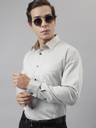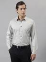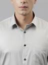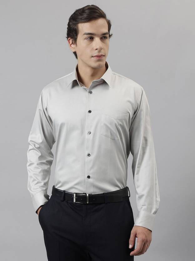 Grey solid opaque formal shirt ,has a spread collar, button placket, 1 pocket, long regular sleeves, curved hem