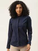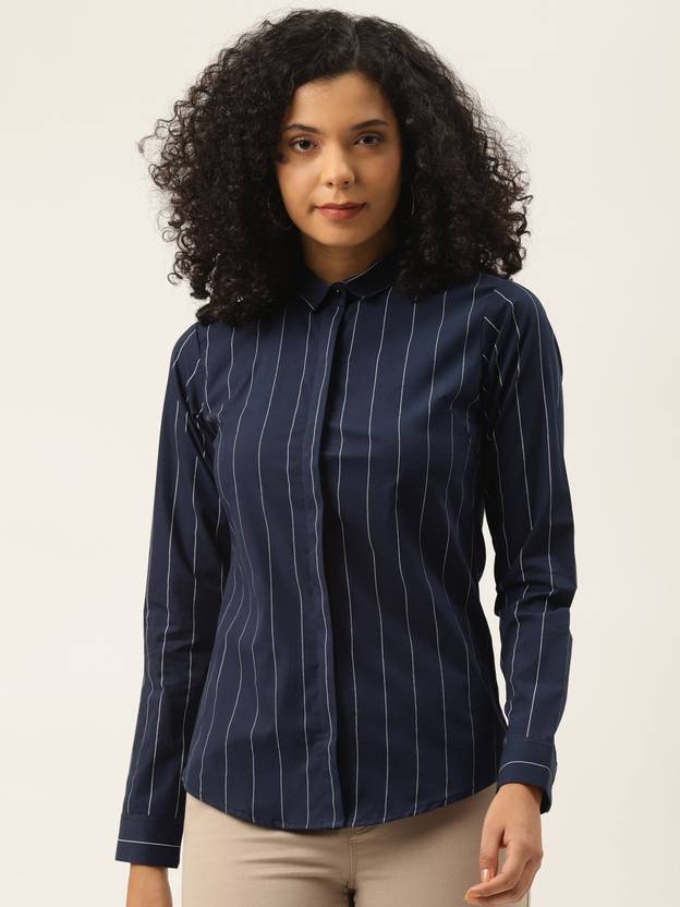 Hancock Women Striped Formal Blue Shirt