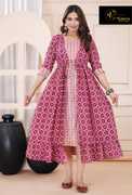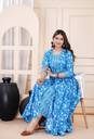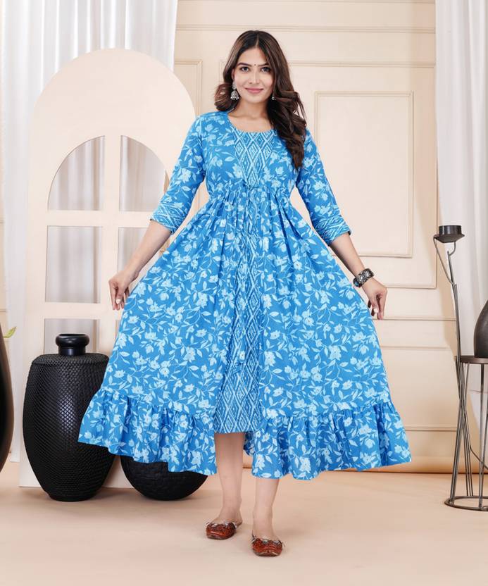 Floral printed Round neck Three-Quarter Sleeves, regular sleeves Anarkali shape with pleated style Ankle length with flared hem Crafted with a round neck, the jacket features with Tie-Up