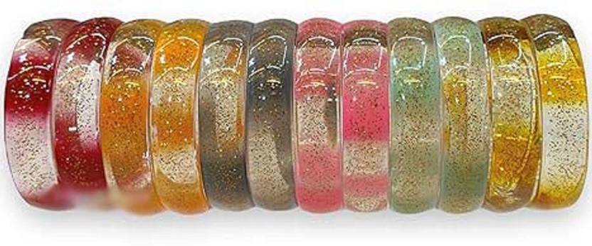 Glossy Plain Glitter Design Transparent Glass Bangles. Comes With 6 Different Colour. The design of this Kada set can make your look beautiful and attractive, As the material of this Kada set is made by very good quality material (like: Glass) and experienced labor as we cannot compromise our clients with the quality of our products Transparent Plastic Box Packaging, Pack Of 6 Colours / 12 Bangles.