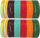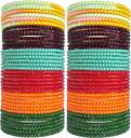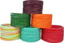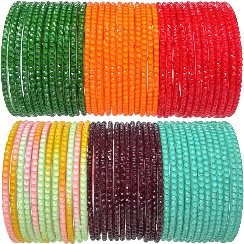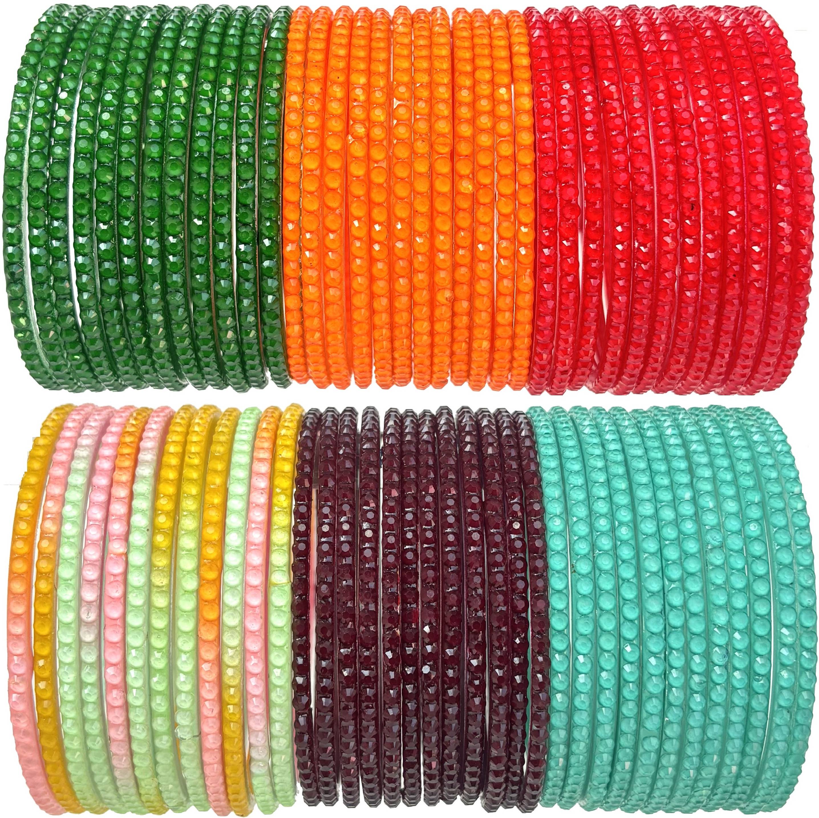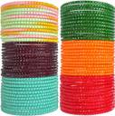 These elegantly crafted glass bangles fromHAND KKRAFTS Bangles make for a stunning accessory. The set of glass bangles comes in a vibrant colors, each piece adorned with intricate beadwork designs. Handmade by skilled Indian artisans, the bangles have a classic round shape perfect for stacking or wearing alone. They fit most wrist sizes comfortably. Lightweight yet eye-catching, these bangles can jazz up any Indian or Western outfit from everyday casual wear to festive events. Their shining glass construction lends an air of sophistication, while the traditional beaded patterns add an ethnic touch. A versatile wardrobe essential, this bangle set is sure to attract appreciation and compliments from all. NOTE: The color may be little bit different from the images.