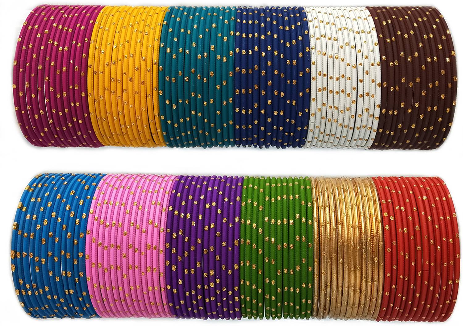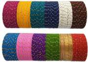 Hand Kkrafts, Features a Collection of Multicolour Metal Bangles Set For Women and Girls with Golden Polka Dotted Zari and Cutting Design. This Designer Stylish Bangle Set will Enhance The Beauty of your hands. These bangles are part of Hand Kkrafts latest collection and are Made of Good Quality Metal Material. These Stylish Multicolour Bangles Have a Premium Sturdy Finish and are Perfect for Festivals, Parties, Weddings, Engagements, and also Daily. Welcome to Our Brand, the world of all types of glass bangles, Metal bangles, Acrylic Bangles, Chuda Sets, Bridal Chuda sets, Kaire sets, Kada sets, and other Women's Jewelry Accessories. Choose from us, a variety of bangles such as Glass, Metal, Silk thread, Acrylic (plastic), Zircon, Bead-worked, Kundan-worked, Lac material, Electric Light Chudaa, and more, . Please refer to our Size Chart to determine your Wrist size Accurately. CLEANING INSTRUCTIONS: To clean the bangles, use a smooth cotton cloth. To ensure their longevity. , Keep the bangles away from Direct water, Perfume, Deodorant, Sunlight, and other Chemicals, and store them in an airtight zip-lock pouch. Thank you for choosing and buying our Products. If you find any problems, then Please refer to our product description For Sizes and Care Instructions. We have been selling products since 2019..