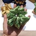 Wooden Scrunchie Holder + 4 Large and fluffy Scrunchies Combo (Random Colours) | 4 Satin Silk Hair Scrunchie | Random Colours Satin Silk Scrunchies | Hair Band | Wooden Holder | Scrunchie Holder | Handmade Scrunchie Holder and 4 Scrunchies Combo | Premium Quality wooden stand