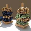 HAND N ART Wooden Scrunchie Holder + 4 Large and fluffy Scrunchies Combo (Random Colours) | 4 Satin Silk Hair Scrunchie | Random Colours Satin Silk Scrunchies | Hair Band | Wooden Holder | Scrunchie Holder | Handmade Scrunchie Holder and 4 Scrunchies Combo | Premium Quality wooden stand Rubber Band (Multicolor)