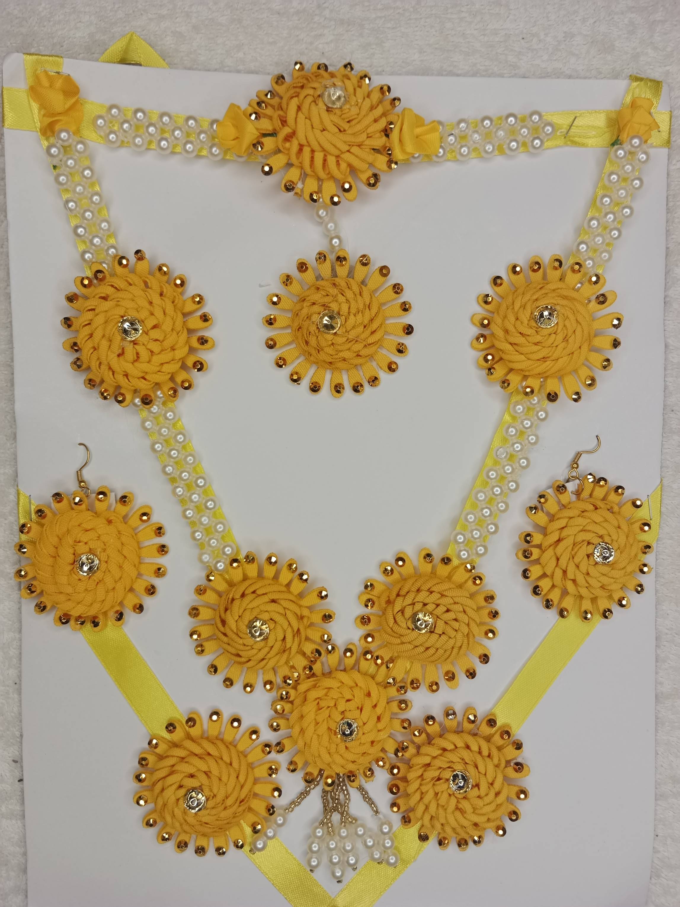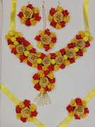 Yellow Red Flowers Haldi Jewellery Set For Women