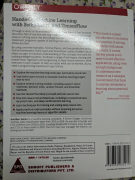 The book acts as a great introduction to ML, and has all the areas starting from data pre-processing covered. Also a good option for someone with prior knowledge of ML but not in Python/Scikit/Tensorflow.