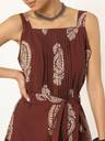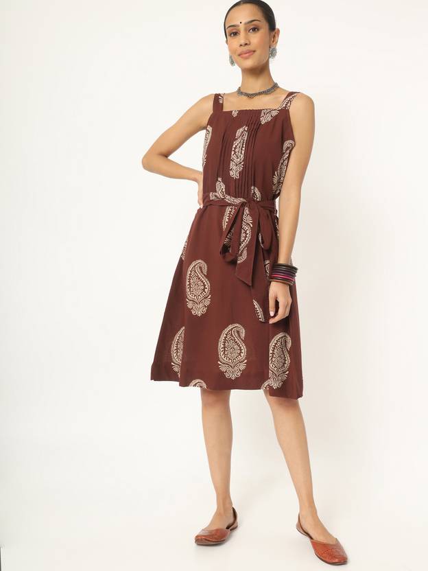 From a late lunch to a night out with your girlfriends, rock our sleeveless pintuck dress crafted with love exclusively for you. The dress is all over a beautiful shade of cinnamon brown, has elegant mango motifs printed in cream colour. This straight cut, knee length dress features a square neckline. Just the perfect blend of style and comfort made with pure cotton fabric, has a waist belt giving the dress a beautiful shape. Team this with your favorite pair of nude wedges and strong you fashion game.