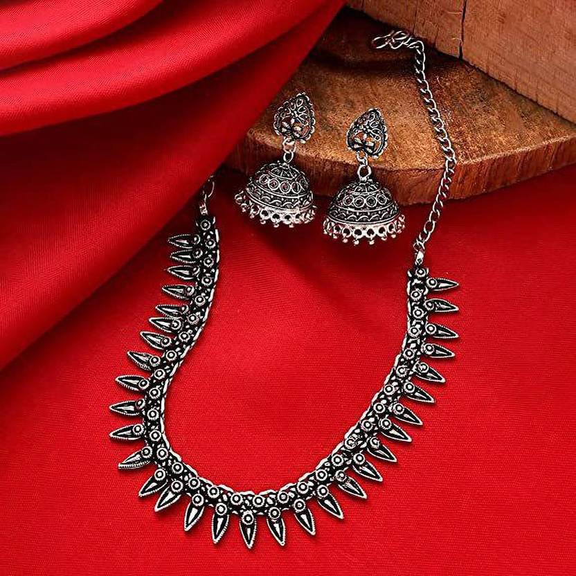 Modern, yet Ethnic Looks Oxidized Silver Plated a Versatile Antique Traditional Designer Necklace Set With jhumki Earrings for Women