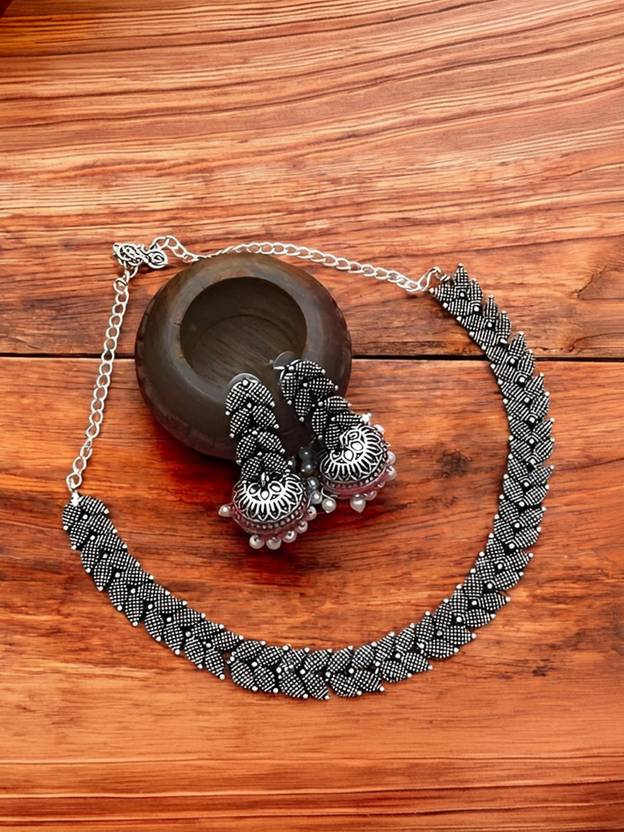 Modern, yet Ethnic Looks Oxidized Silver Plated a Versatile Antique Traditional Designer Necklace Set With Studs Earrings for Women