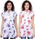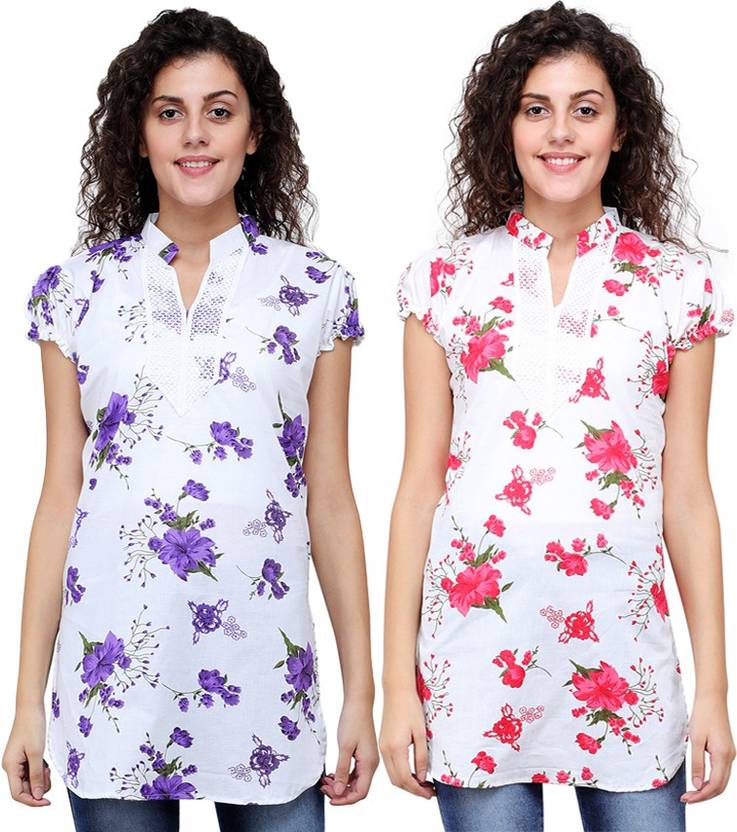 Haniya Women's Multi Coloured Printed Kurti Combo (Pack of 2). Made Up Of Pure Cotton These Mid Thigh Length Short Kurties Are Perfect For Matching With Your Regular Blue Jeans, White Or Matching Leggings Or Jeggings.