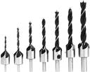 [Value Screw Tap Set ]--7pcs drill bits of various type, meeting you different tool needs. Including 7 HSS 5 flute countersink drill bit of 3/4/ 5/ 6/ 7/ 8/ 10mm.[Sturdy and Durable]--Designed for longtime service life. Constructed with high speed steel ,tiain coating and heat process treatment,superior cutting power.[Spiral Flute Design ]--Designed as five spiral flute, single flute edge chamfer 90 degree. for smoother chip removal, no stuck during work, easy to clean,making the workpiece smoother cut.[More Efficient Work]--No need for additional center drills or center punches! Great drill accessory for any work shop .[Work On Most Material]--Can be used on steel, aluminum other light metals, plastic or wood.
