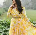 Bring elegance and charm to your ethnic wardrobe with this beautiful Yellow Anarkali Gown, perfect for festive occasions, parties, and special events. Crafted from premium Georgette fabric, this gown feels lightweight, breathable, and comfortable for long wear. The floral printed design adds a fresh and graceful look, making it ideal for modern yet traditional styling. Designed in a classic ankle-length Anarkali pattern, it enhances your silhouette beautifully. The gown features a round neck and full sleeves, offering a modest and stylish appeal. It comes with a soft crepe inner for added comfort and perfect fall. Available in sizes M, L, XL, and XXL, it suits various body types. Please note, no bottom wear is included. The package contains 1 Anarkali Gown and 1 matching Dupatta, neatly packed in a box. A perfect choice for elegant ethnic fashion lovers.