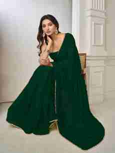 drashti trading Solid/Plain Bollywood Georgette Saree Dark Green